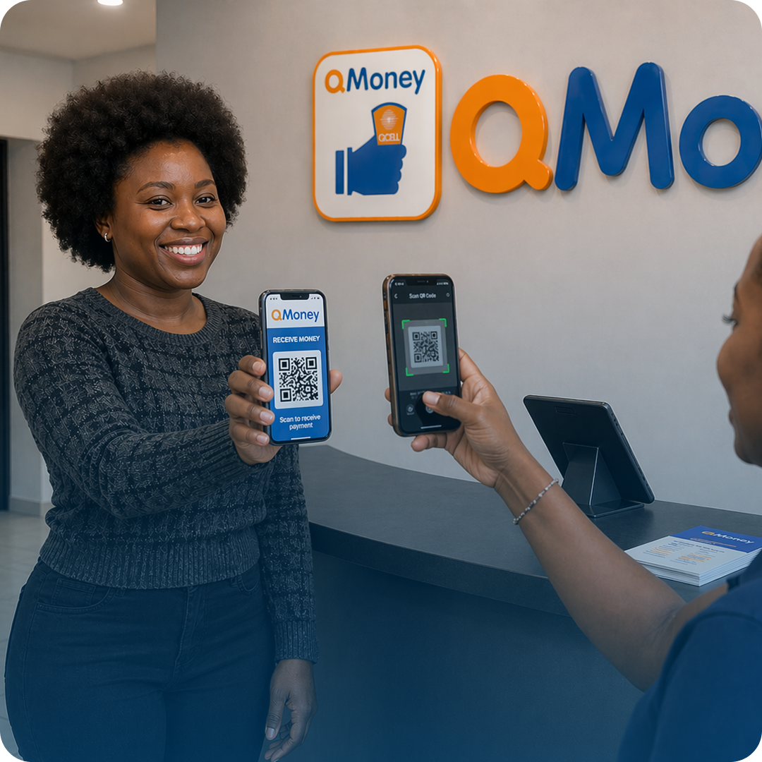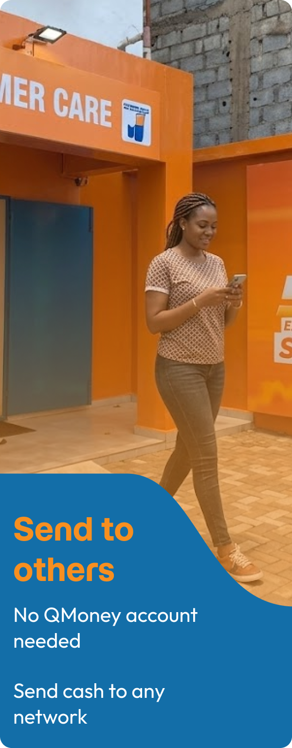 Send QMoney via the app or by dialing the USSD codes to anyone with QMoney
