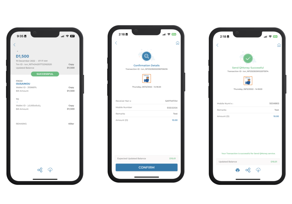 All actions can be achieved by either using the: USSD codes, QMoney App & Web Portal